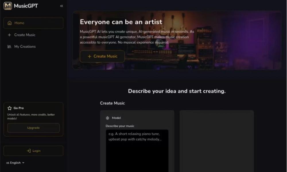 MusicGPT Pro uses the Suno V3 model, enabling anyone to create broadcast-quality songs in seconds. Just a simple idea can generate unique, high-quality musical pieces, with no instrument knowledge required.