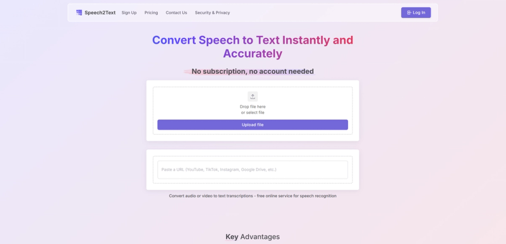 Speech2Text is an innovative service for automatic transcription of audio and video files into text. It is intended for everyone who needs to quickly and accurately convert speech recordings into text format, whether journalists, researchers, students, or business professionals. The service uses advanced speech recognition algorithms to accurately convey the content, automatically separate text by speakers, and simplify the editing process. Speech2Text is an easy tool for creating documents, articles, transcripts, and other text materials.